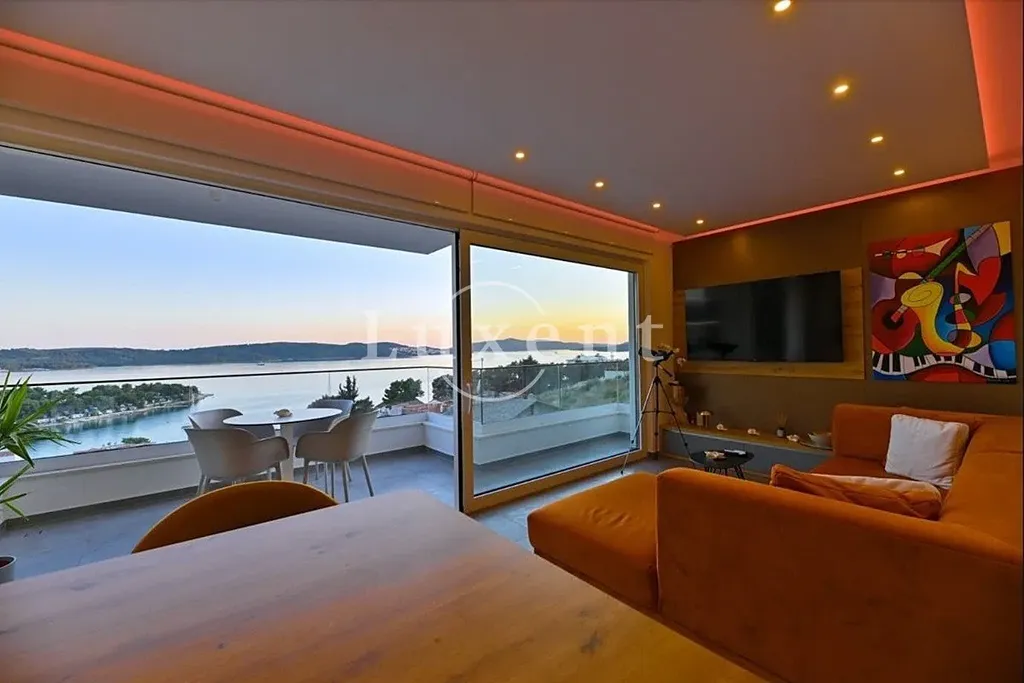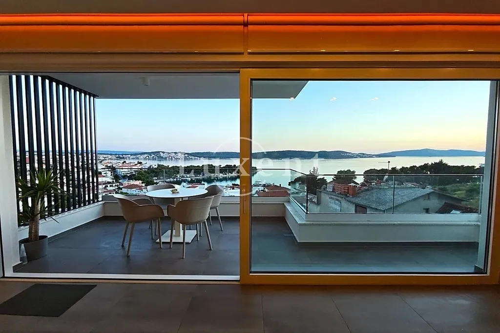 Nabízíme ke koupi exkluzivní, nově postavený penthouse nacházející se v posledním podlaží moderního komorního domu v klidné části chorvatského ostrova Čiovo, pouhých 210 metrů od moře a nedaleko historického centra města Trogir. Tato nemovitost zaujme dechberoucím výhledem na moře a okolní ostrovy, sofistikovaným designem a dokonalým propojením středomořského životního stylu s moderním komfortem.