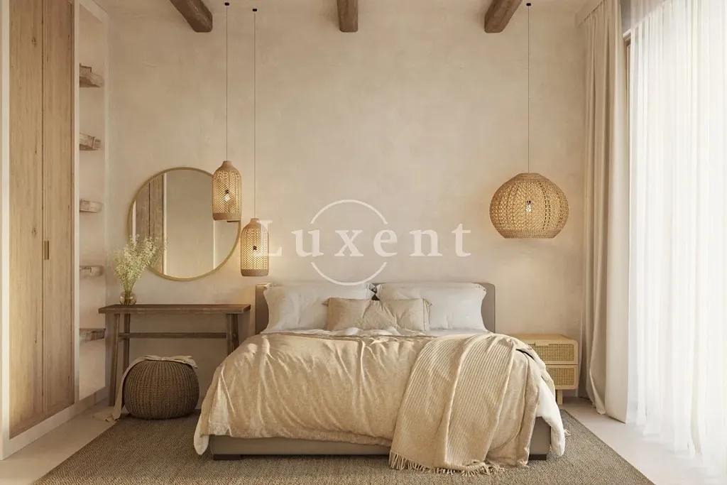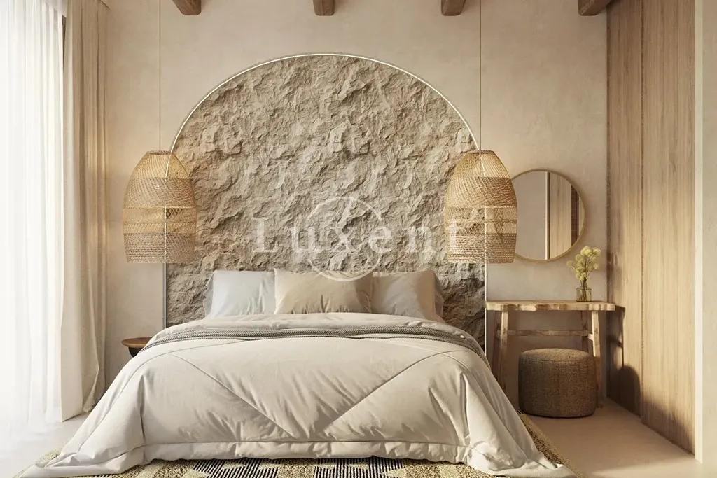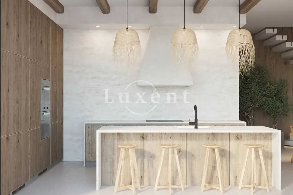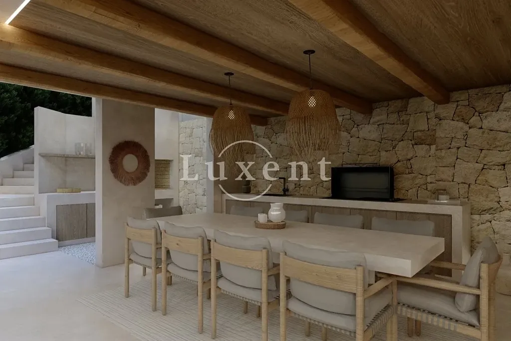 Vila je rozdělena do dvou podlaží a nabízí pět prostorných ložnic a šest moderních koupelen. Přízemí tvoří otevřený obytný prostor s kuchyní, jídelnou a obývacím pokojem s přímým výstupem na rozlehlou terasu. Součástí přízemí jsou také technické místnosti, prádelna, toaleta, posilovna, sauna a vnitřní bazén s protiproudem. V suterénu se nachází prostor pro odpočinek a zábavu s venkovní kuchyní, grilem, krytou letní jídelnou a venkovním kinem.