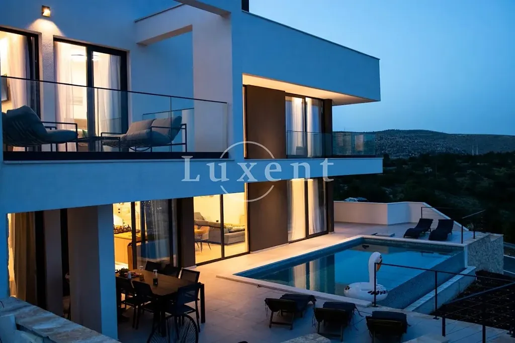 Silnou stránkou této vily je nejen moderní design, ale i výhledy, které jsou dostupné téměř z každého koutu domu. Lokalita nabízí klid a soukromí daleko od ruchu města a přesto je velmi dobře dostupná – v blízkosti jsou město Trogir, letiště, dálniční spojení a veškerá občanská vybavenost.