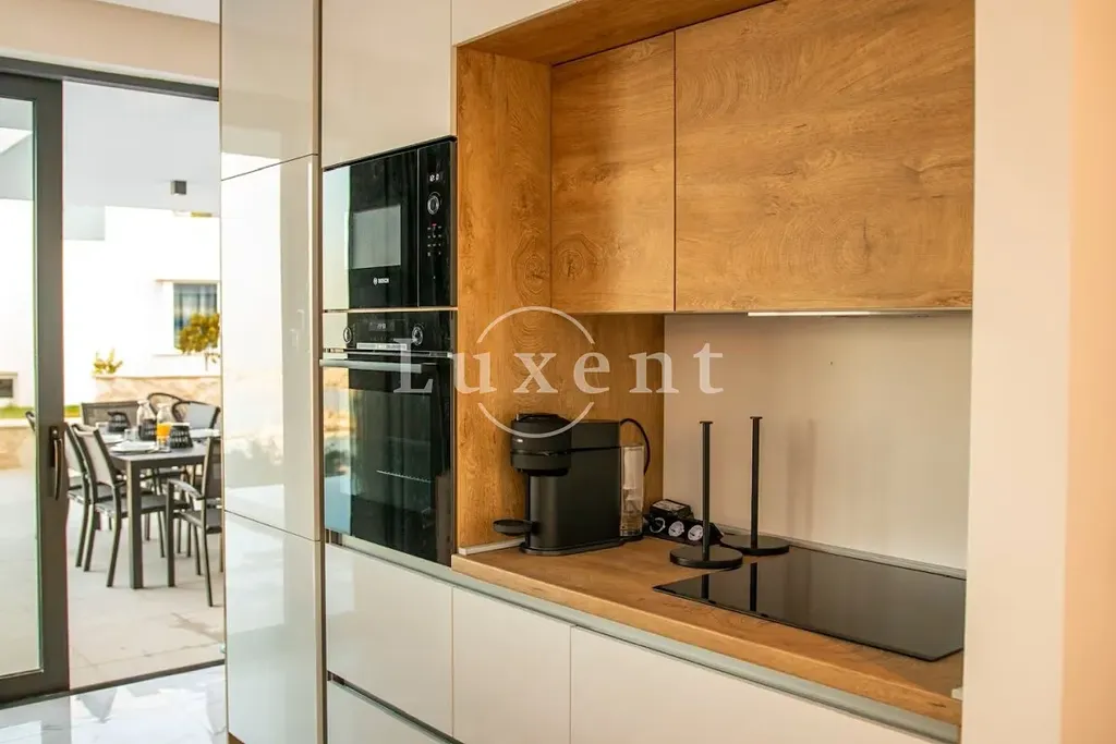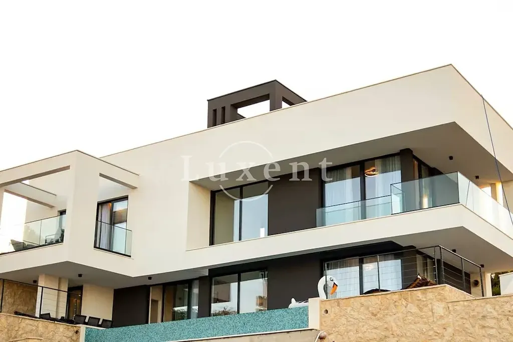 Nabízíme k prodeji moderní vilu s bazénem v dominantní poloze v zázemí Trogiru s výhledem na záliv Kaštela a středodalmatské ostrovy. Tato elegantní moderní vila se rozkládá na čtyřech podlažích a nabízí obytnou plochu 320 m² na pozemku o velikosti 590 m². Svým architektonickým pojetím spojuje nadčasový design, maximální komfort a praktické dispoziční řešení, které vytváří ideální prostor pro rodinné bydlení i rekreační pobyty.
