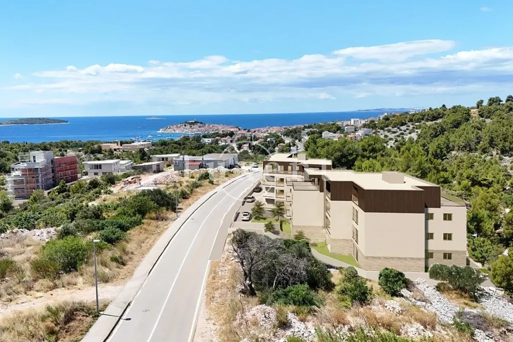 Nabízíme k prodeji moderní dvoupokojový apartmán umístěný ve třetím patře kvalitní rezidenční budovy s výtahem a garáží, která zahrnuje pouze 11 bytových jednotek. Apartmán se nachází v oblíbené přímořské lokalitě Primošten – Kamenar a nabízí výjimečné panoramatické výhledy na moře, historické centrum města i široké okolí. Uzavřená obytná plocha apartmánu činí 71,50 m², celková započitatelná plocha včetně příslušenství je 101,21 m² a zahrnuje krytou terasu a dvě otevřené terasy.