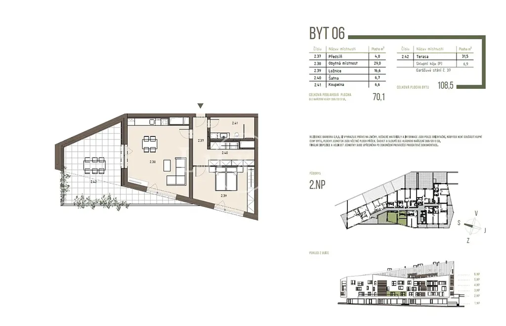 Nabízíme k prodeji apartmán v projektu Rezidence Svatá Barbora. Apartmán o dispozici 2+kk a podlahové ploše 70,1 m2 s terasou 31,5 m2 se nachází ve 2. NP novostavby s plánovanou kolaudací od 2Q 2027.