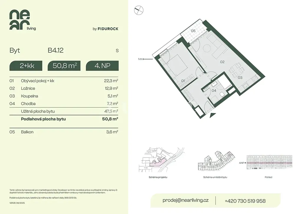Nabízíme k prodeji byt 2+kk o podlahové ploše 50,8 m² s balkonem 3,6 m² v developerském projektu NEAR living v Praze 8, vznikajícím na pomezí Palmovky a Karlína.