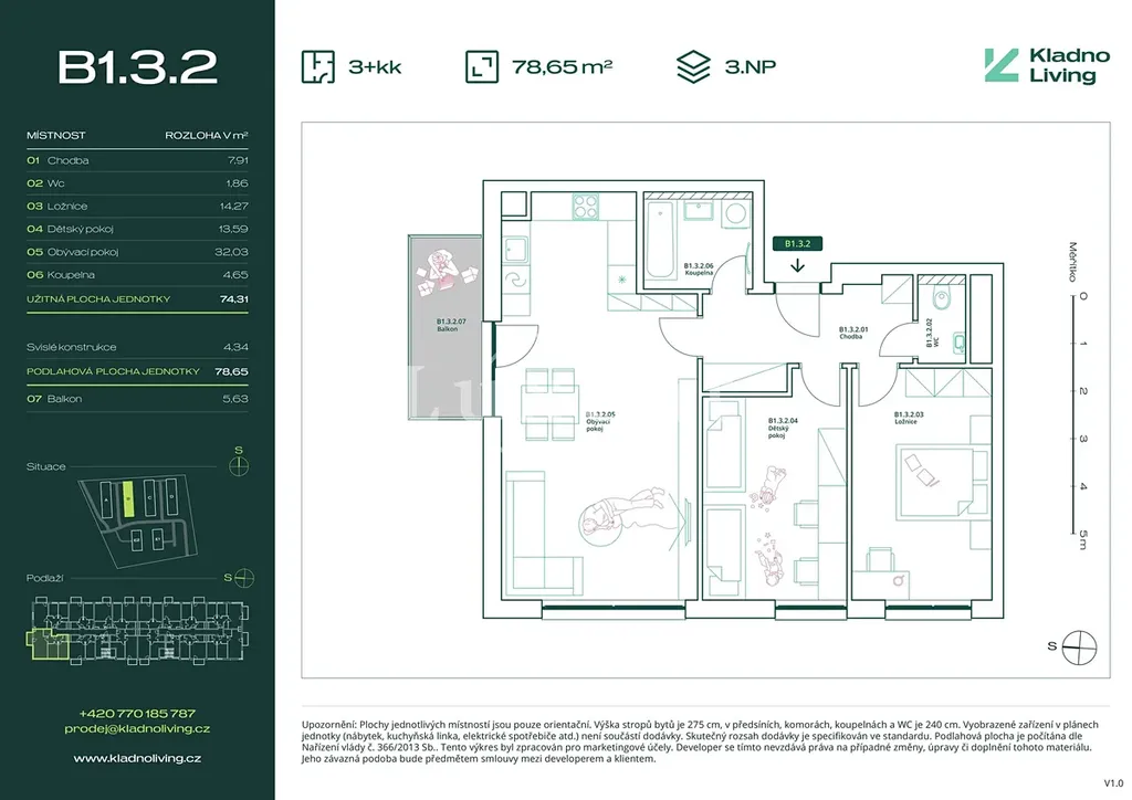 Nabízíme ke koupi moderní byt 3+kk o podlahové ploše 78,7 m² s balkonem 5,6 m² v rezidenčním projektu Kladno Living, který vzniká v jedné z nejatraktivnějších lokalit města Kladno – Kročehlavy. Tento nový developerský projekt představuje jedinečnou příležitost pro ty, kteří hledají nové byty v Kladně nebo investici do nemovitosti s vysokým potenciálem zhodnocení.