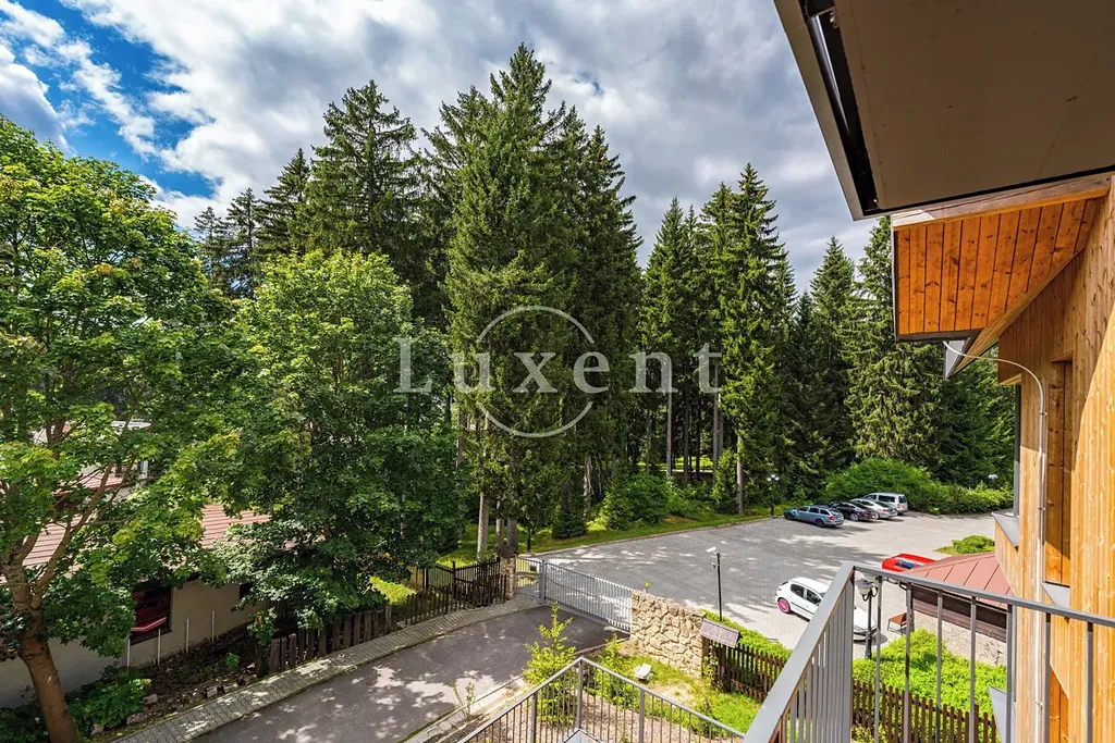Nabízíme k prodeji apartmán o dispozici 1+kk, obytné ploše 52,2 m² a podlahové ploše 54,6 m² s balkonem 4,5 m², který se nachází ve 2. nadzemním podlaží nově vznikajícího projektu HARRACHOV PEAKS. V komorním projektu je k dispozici celkem 16 stylových, útulných apartmánů o velikostech od 1+kk až po mezonety 4+kk s výhledem na vrcholky okolních hor, každý s terasou nebo balkonem. Tento nový apartmánový dům se nachází na horách přímo v lyžařském a rekreačním středisku – v oblíbené krkonošské lokalitě města Harrachov.