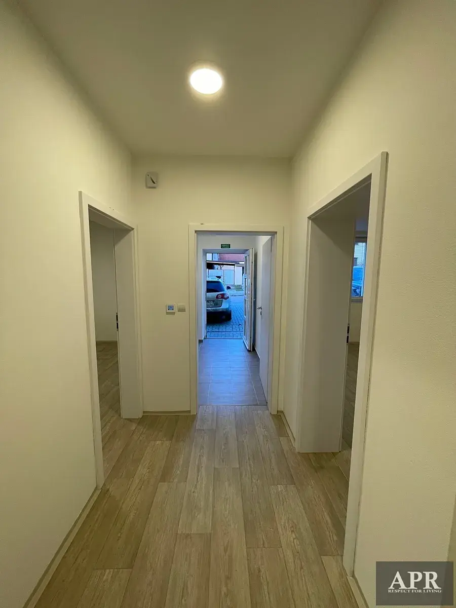 Nabízíme k dlouhodobému pronájmu novou, moderní, bytovou jednotku o velikosti 1+KK s příslušenstvím, parkovacím místem a sklepem. Byt je vytápěn el. podlahovým topením, prostřednictvím tepelného čerpadla. Dále v bytě rekuperace, nucené větrání. Okna jsou vybavena vnitřní stínící žaluzií. Byt je zařízenou kuchyňskou linkou včetně varné desky a trouby.