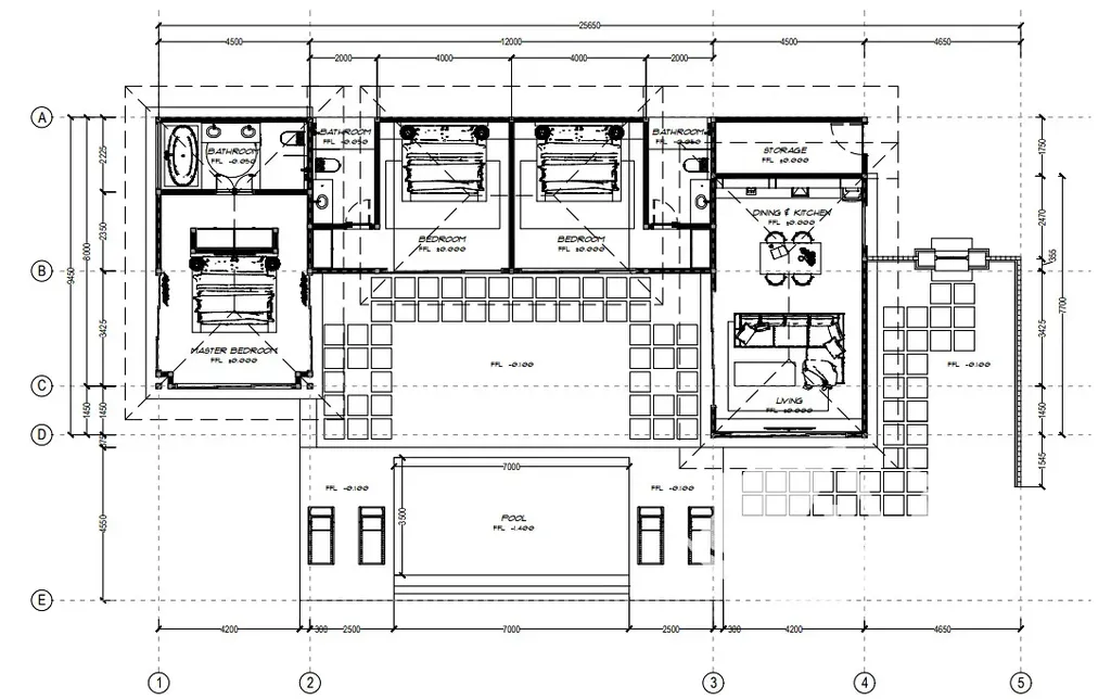 Interiér je navržený s důrazem na propojení prostoru a světla. Otevřený obývací pokoj s kuchyňským koutem plynule navazuje na venkovní část, kde můžete trávit většinu dne. Tři ložnice poskytují dostatek soukromí pro rodinu i hosty a zároveň dávají flexibilitu využití. Dům je bezbariérový, praktický a připravený na pohodlné celoroční bydlení.