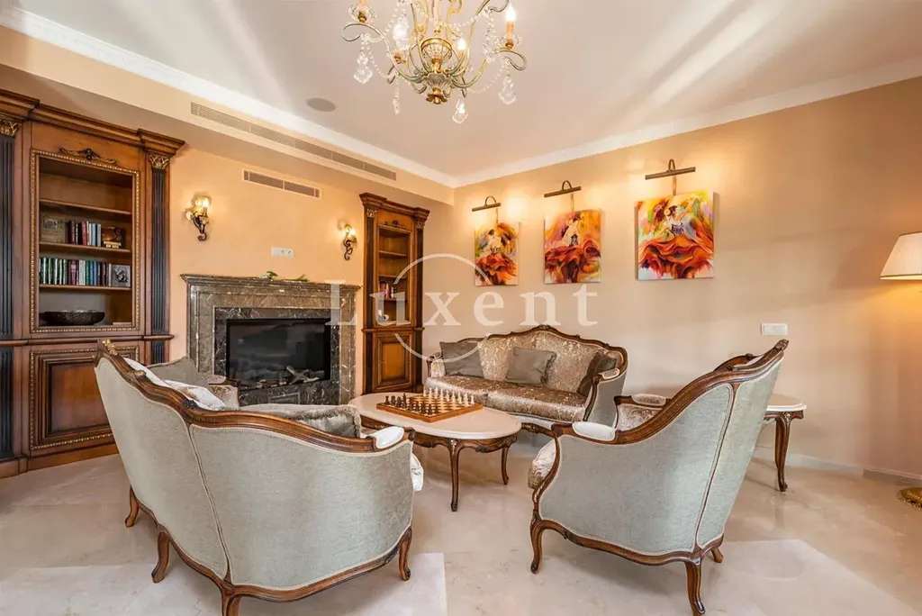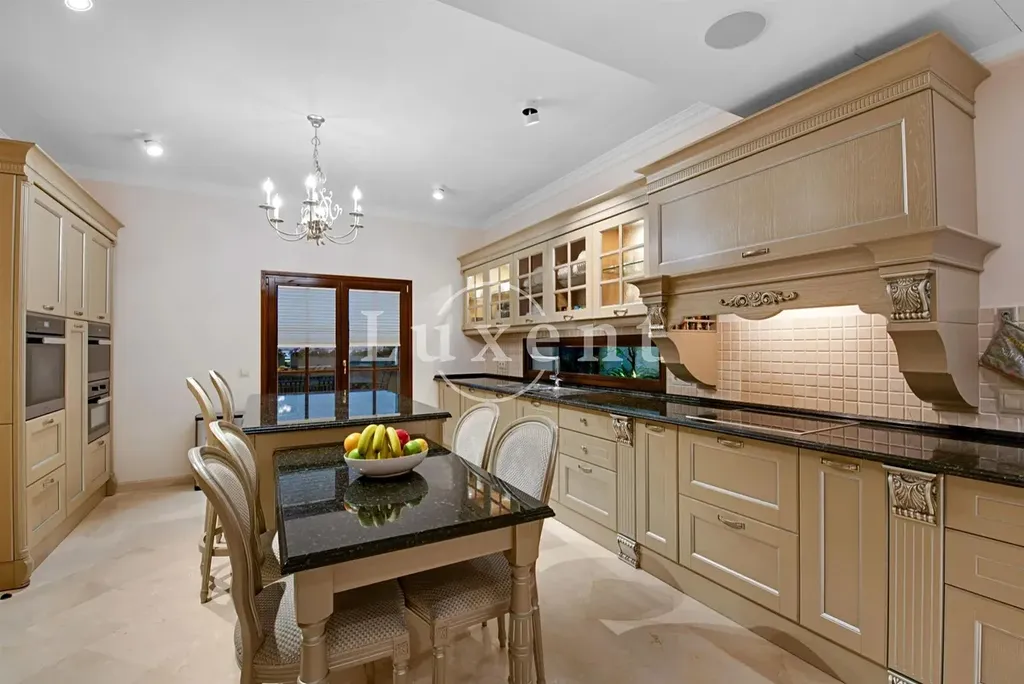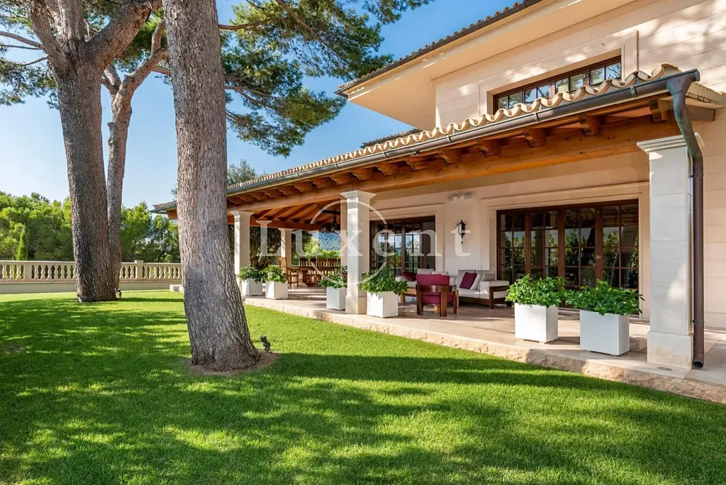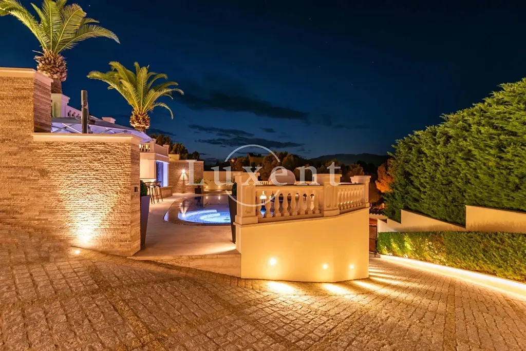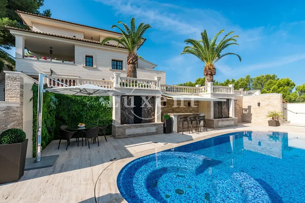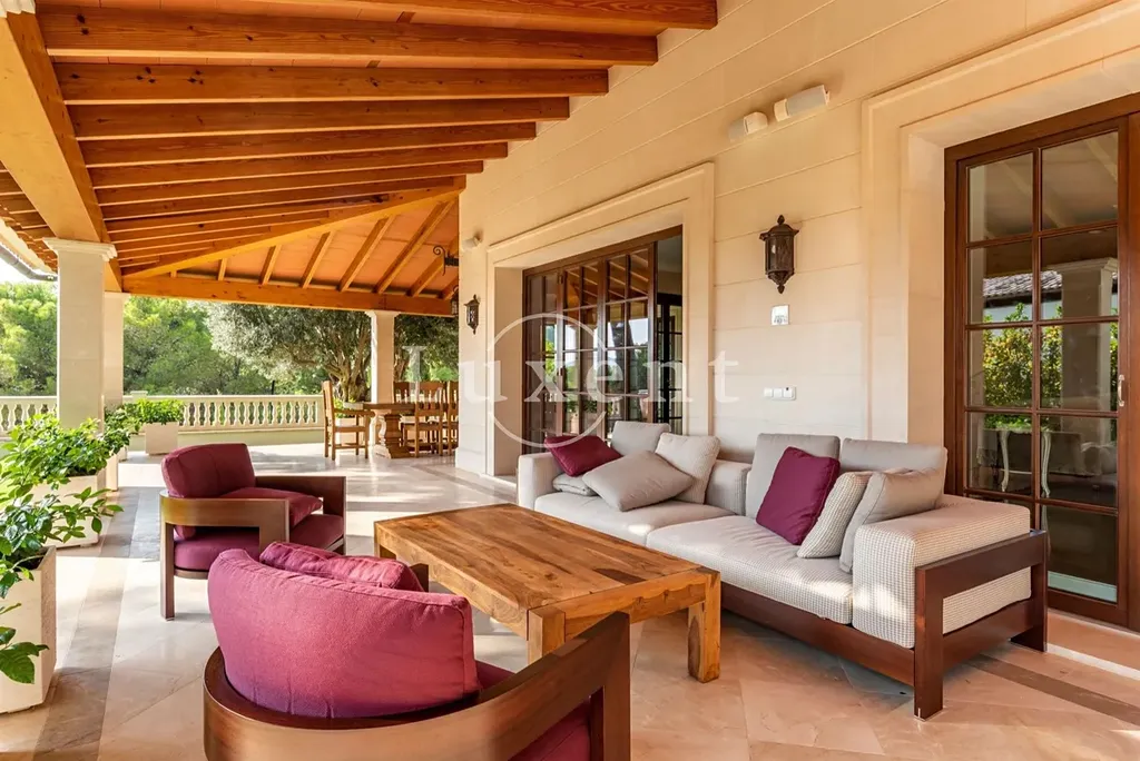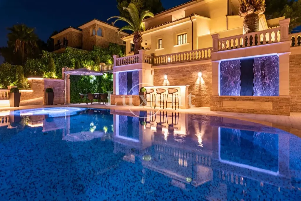 Nabízená nemovitost disponuje šesti ložnicemi a sedmi koupelnami, vířivkou a masivním vyhřívaným bazénem (98 m³) se slanou vodou. Bazén má čistící systém a protiproudovou trysku. V suterénu naleznete prostornou garáž pro tři auta a saunu, v přízemí se nachází prostorný obývací prostor, samostatná jídelna, další obývací pokoj s krbem, prádelna, kuchyně, snídaňová terasa, velká krytá terasa, dvě ložnice s koupelnami a toaleta pro hosty. V prvním patře se nachází další ložnice s koupelnami, herna a terasy s úchvatným výhledem na moře a pohoří Sierra de Tramuntana. Vila je vybavená alarmem, kamerovým systémem a speciálním světelným systémem. Je zde zaveden optický internet. K vile naleží garáž a další parkovací stání před vilou.