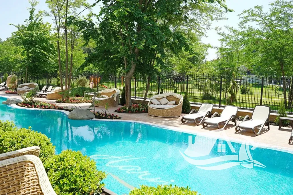 Harmony Suites 8 patří mezi komplexy, které nastavují vyšší standard. Velký bazén s relaxačními zónami, dětský bazén, vířivka, upravené zahrady i moderní wellness vytvářejí prostředí, kde se dobře žije i odpočívá. Recepce a nepřetržitá ostraha zajišťují bezpečí a komfort po celý rok.