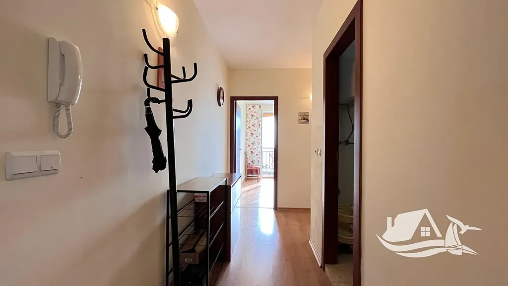 Tento světlý apartmán v komplexu Chateau Aheloy 1 působí od první chvíle otevřeně a příjemně. Nachází se ve druhém podlaží a jeho dispozice dává smysl nejen na papíře, ale hlavně v každodenním životě. Obývací pokoj s kuchyňským koutem je místem, kde se potkává den – ranní káva, společné večeře i odpočinek po návratu z pláže. Dvě samostatné ložnice pak nabízejí dostatek prostoru pro rodinu i hosty.