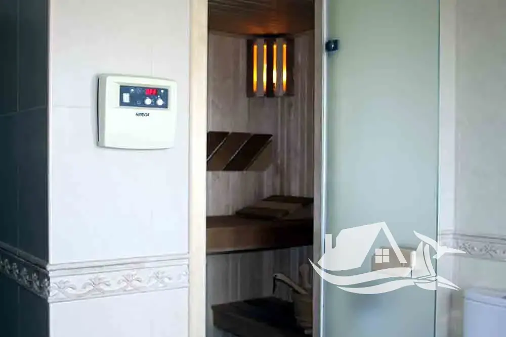 Dům je kompletně zařízený kvalitním nábytkem a spotřebiči značek Bosch a Siemens. Použité materiály i technologie odpovídají vysokému standardu, včetně klimatizace Daikin, solárních panelů, krbu s rozvody tepla a podlah z přírodního dubu.