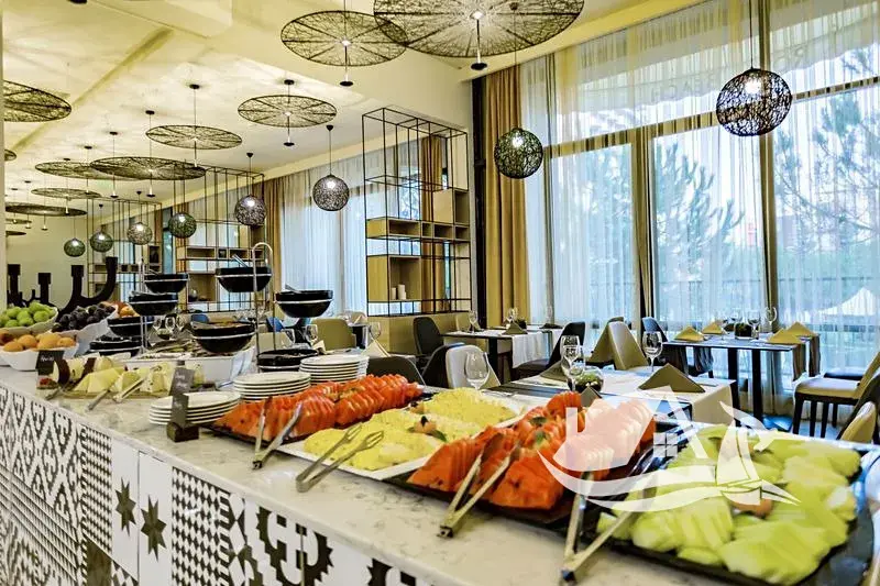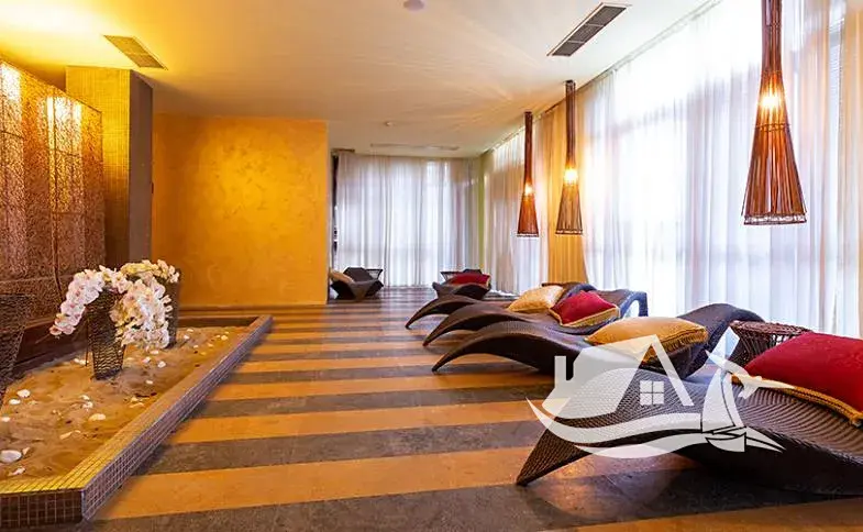 Vybavení areálu: bazény, vyhřívaný vnitřní bazén, wellness, spa, fitness, sauna, restaurace, recepce, ostraha
