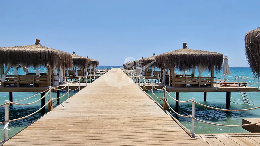 Obrovskou výhodou je fakt, že resort má vlastní pláž, kde jsou lehátka a domečky určené pro residenty projektu. Je zde nově i krásné molo s lehátky a boxy, kde si můžete objednat například osvěžující drink. Vstup na pláž je řešen podchodem pod silnicí. Residenti múzou využívat infrastrukturu obou etap projektů. Podobných resortů je na Kypru velmi málo.