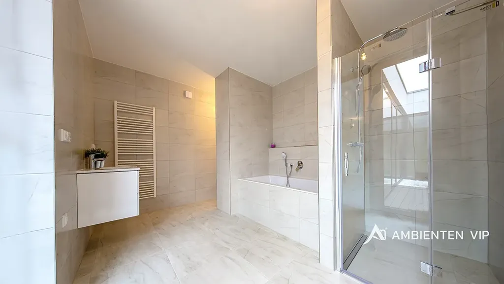 Celkem se v domě nachází tři obytné ložnice o velikostech 13,27 m2, 14,56 m2 a 18,66 m2. Druhá luxusní koupelna je přístupná ze dvou ložnice a disponuje WC, umyvadlem, sprchovým koutem a vanou.