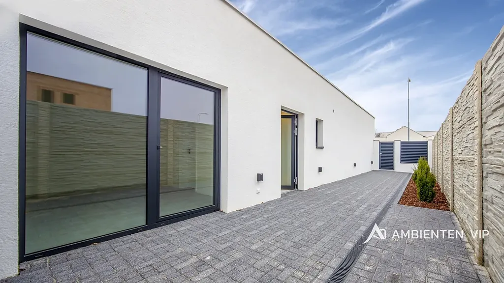 Nabízíme mimořádně úspornou, zateplenou jednopodlažní novostavbu o dispozici 4+kk. Při realizaci byly použity nadstandartní materiály ve vyšší cenové kategorii. K dispozici je prostorná dvojgaráž a možnost parkování dalších dvou vozů na vlastním pozemku. Dům je plně klimatizovaný (v každé místnosti klimatizační jednotka). Podlahové vytápění v celém domě. Regulace vytápění umožněna v každé místnosti samostatně. Okna jsou hliníková s izolačním trojskla. Dveře s obložkovými zárubněmi.