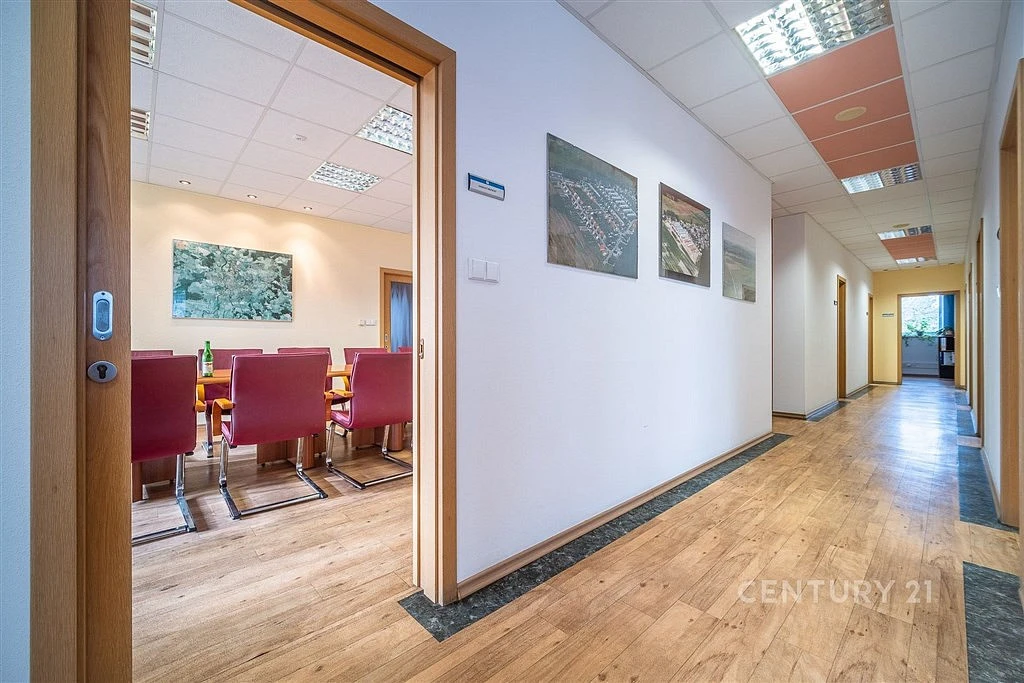Dále se na podlaží nachází sdílená kuchyňka a toalety. Parkovací místo je zajištěno na vlastním dvoře za budovou. Cena měsíčního nájmu včetně služeb je 6.000, Kč měsíčně. Vratná kauce 12.000, Kč. Kancelář je volná ihned.