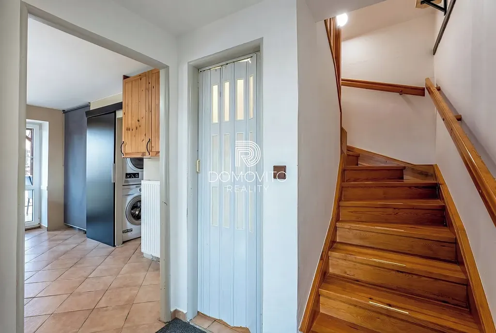 V patře pak dva pokoje a komora, ideální jako šatna nebo pracovní kout.