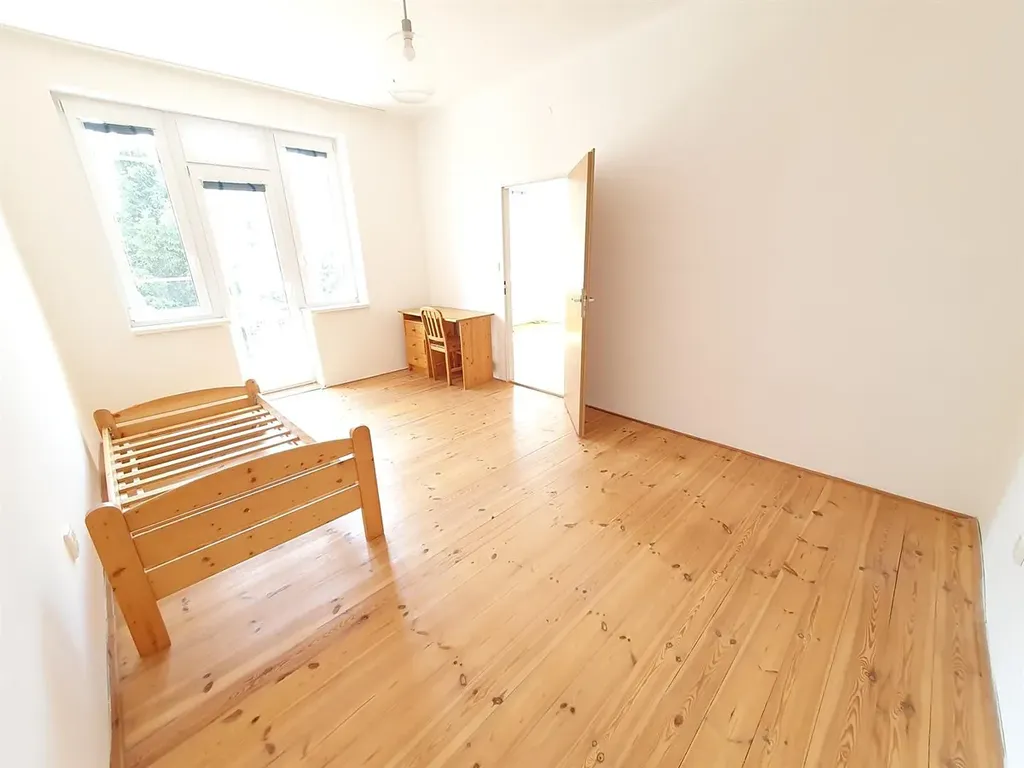 Pěkný světlý byt s balkonem 2+kk 50 m2, Praha 3, Žižkov/Jarov, ul. U kněžské louky, v 1. patře cihlového domu, v bytě jsou dřevěné podlahy, topení plyn, plastová okna, ložnice s přístupem na balkon, kuchyňská linka s lednicí je součástí obývacího pokoje, koupelna s vanou, samostatná toaleta, nezařízeno - pračka a nábytek po dohodě. Výhled do klidné a zelené zahrady.