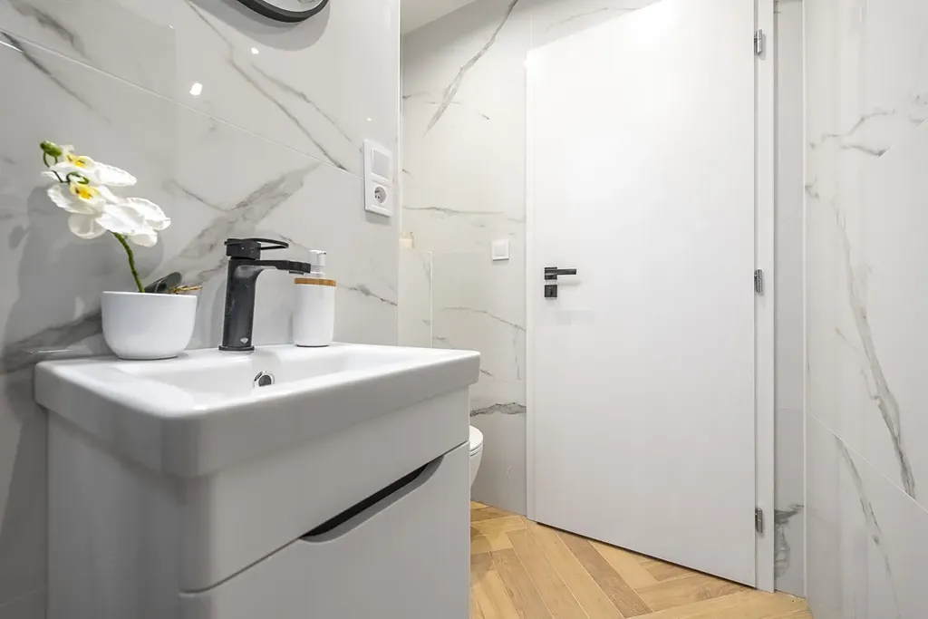 - nová sanita (vana, sprcha, umyvadla, skříňky, toalety)