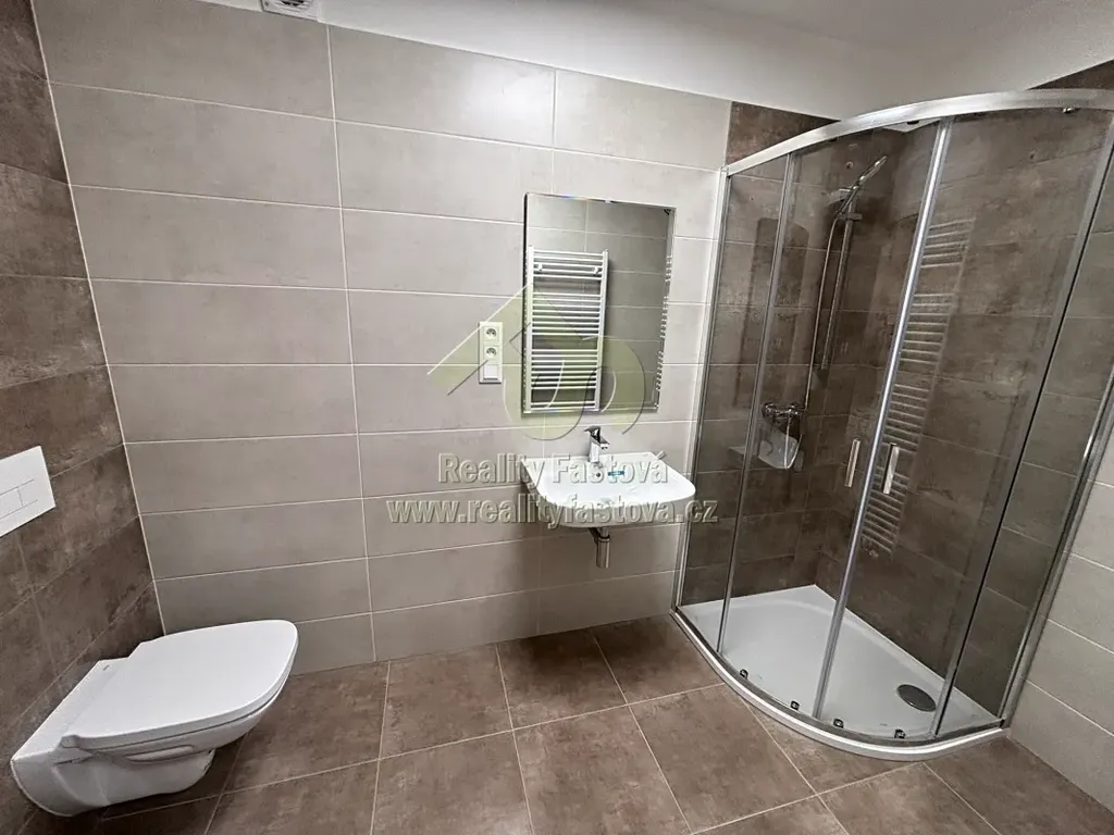 - Vstupem do bytu vejdeme do vcelku prostorného zádveří, dále do chodby, ze které je vstup do samostatné koupelny se sprchovým koutem, umyvadlem a toaletou. Je zde dostatek místa na koupelnový nábytek a umístění pračky a sušičky.