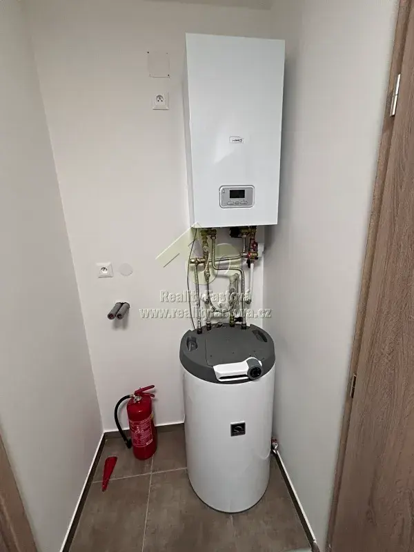Ohřev vody zajišťuje elektrobojler, vytápění bytu, které je v celém bytě podlahové, zajišťuje el.kotel.