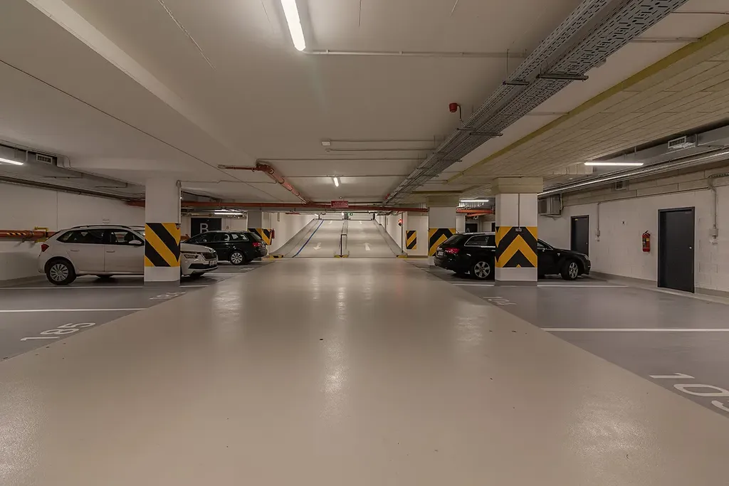 K pronájmu nabízíme nadstandardně široké garážové stání (cca 390 x 490 cm) v rezidenční novostavbě Astrid Garden z roku 2024 v 1. PP. Vjezd do garáží je vraty na dálkové ovládání z ulice U Průhonu. V prostoru garáží je možné využít místnost na umytí kol a dílnu.