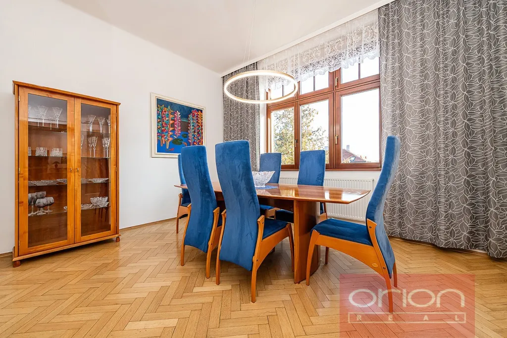 Nabízíme k pronájmu prostorný, zařízený byt o ploše 131 m² s terasou 21 m², situovaný ve 2. patře rezidenční vily s krásnou zahradou v prestižní vilové čtvrti Hanspaulka v žádané lokalitě Praha 6 – Dejvice.