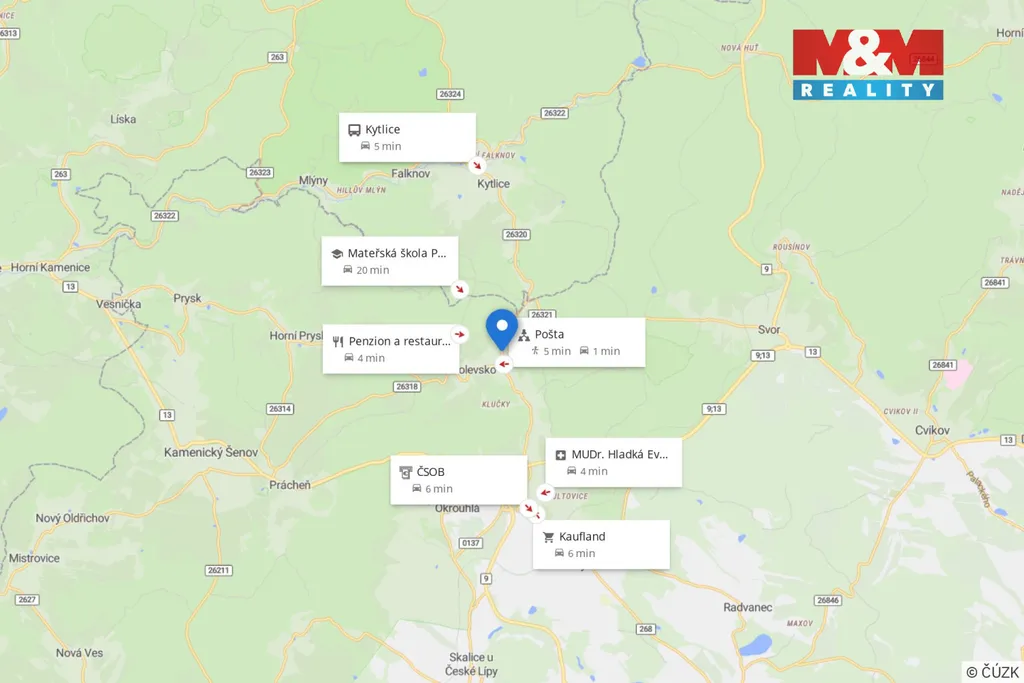 Nový Bor (5 minut autem) – kompletní občanská vybavenost: školy, školky, obchody, restaurace, zdravotní péče.