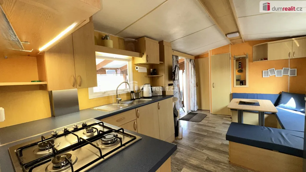 - Mobilheim (2ložnice, prostorný pokoj s rozkládací rohovou sedačkou a vybavenou kuchyňskou linkou, WC, sprcha)