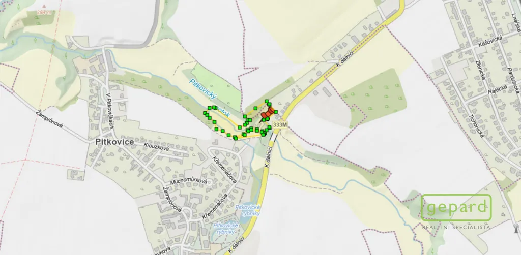 Jedná se o pozemky parc. č. 278/1, 278/2, 280/7, 280/8, 280/9, 280/10, 281/4, 282/5, 283/2, 284/2, 190, 191, 192 (součástí je stavba č. p. 19, rod. dům), 193, 194 a 196, vše v k.ú. Pitkovice. Dle platného územního plánu spadají tyto pozemky do kategorie ZMK – zeleň městská a krajinná a podél Pitkovického potoka je vymezen biokoridor ÚSES, což podtrhuje výjimečnost a přírodní charakter lokality, zároveň je však nutné to zohlednit při plánování budoucího využití.