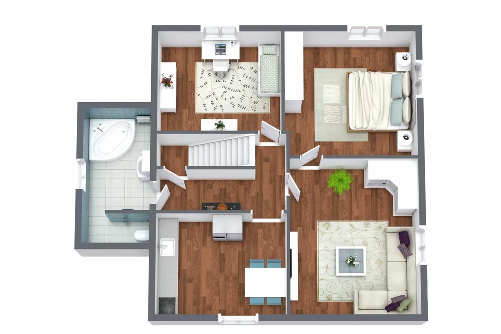 Dům je aktuálně rozdělen na dvě bytové jednotky 3+1 s většími pokoji. Obě mají cca 75 metrů čtverečních a vlastní vchod. Malým zásahem je propojíš klidně zpět v jeden celek. Popisuju to i ve videu, tak na něj koukni.