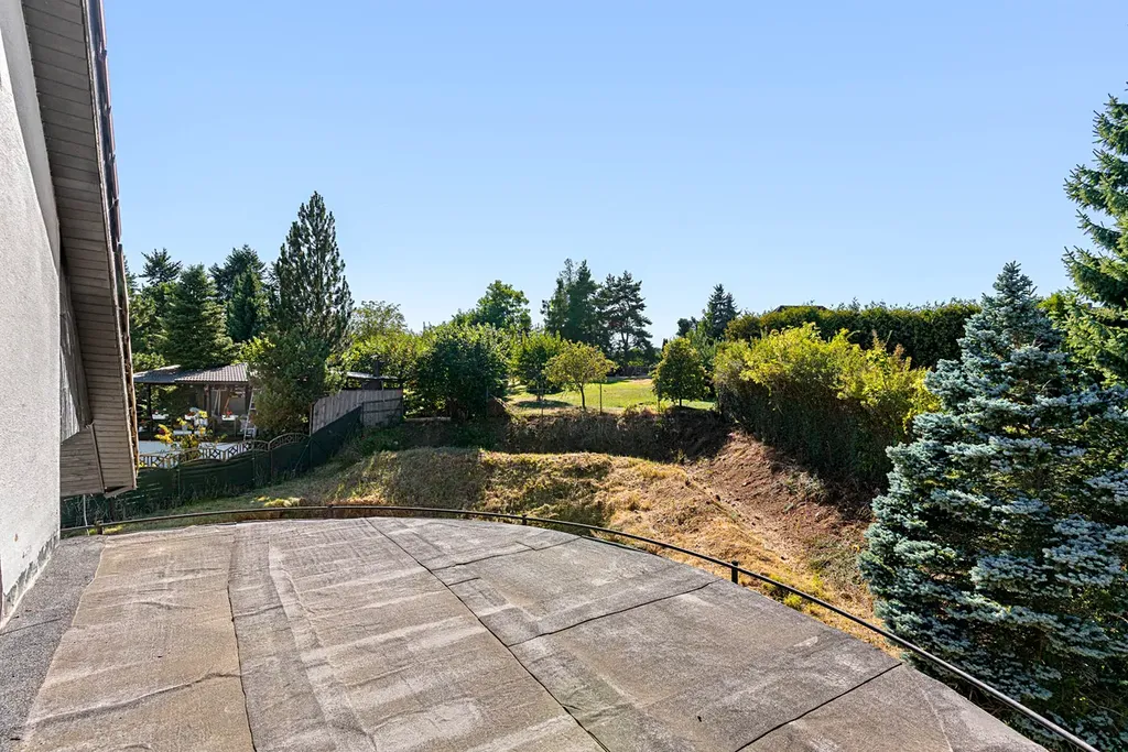 Zahrada se vzrostlými stromy byla navržena zahradním architektem a poskytuje maximální soukromí i prostor pro odpočinek. K dispozici je již připravená jáma pro realizaci bazénu nebo přírodního jezírka dle vašich představ.