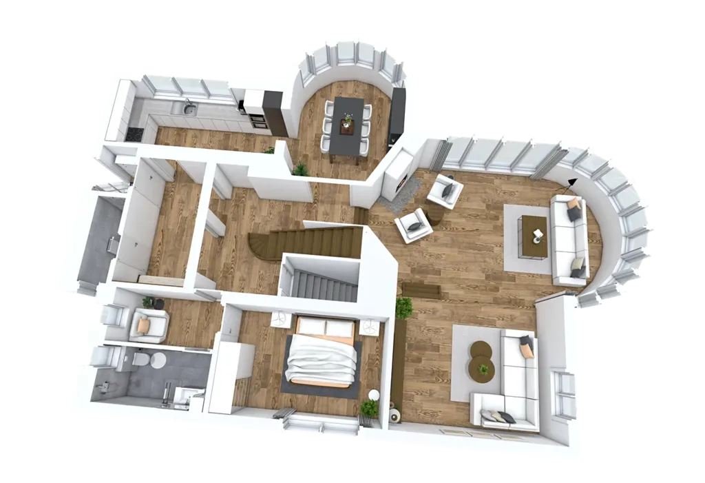 Díky své dispozici se nabízí také možnost jednoduchého rozdělení příčkou, čímž lze získat další plnohodnotný pokoj dle vašich potřeb.