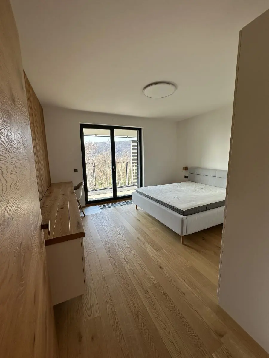 Byt zaujme prostorným dispozičním řešením a velkou terasou (cca 10 m and sup2;), která poskytuje ideální místo pro odpočinek i posezení. Interiér je laděn do přírodních tónů s kvalitní dubovou podlahou a dřevěnými prvky, které vytvářejí příjemnou a útulnou atmosféru.