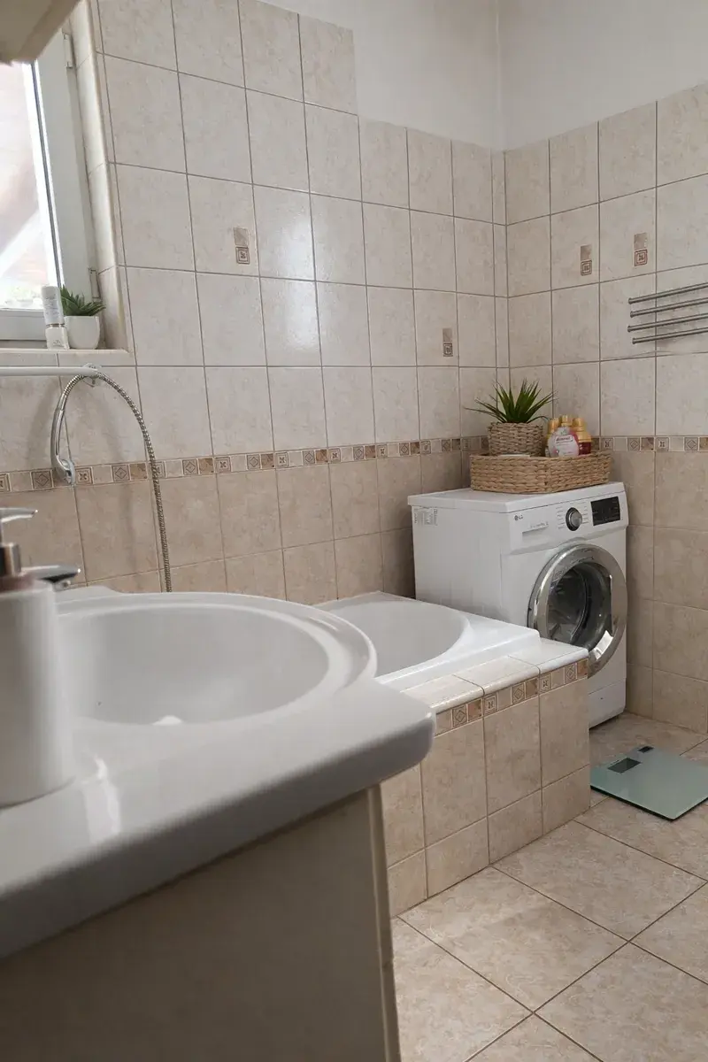 Kromě prostorného interiéru má tato nemovitost zastřešenou terasu pro příjemné posezení navazujici na kuchyňsky kout, balkón s úžasným výhledem, samostatně stojící garáž 28m2 na jedno auto, původní prádelnu 28 m2.