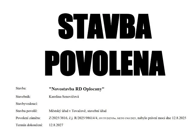 Nabízíme k prodeji stavební pozemek o výměře 534 m² s vydaným stavebním povolením na výstavbu rodinného domu o dispozici 3+kk (2 samostatné místnosti, obývací pokoj s kuchyní a terasou, parkovací stání před domem na pozemku) ve vyhledávané lokalitě obce Oplocany cca 20 min. autem od města Prostějov. K pozemku vede asfaltová příjezdová komunikace a pozemek je také přístupný ze zadní a boční strany přes obecní polní cestu. Pozemek se prodává s již vyřízenou elektroinstalací (uhrazen připojovací poplatek 15.750,- Kč) a výše zmíněným stavebním povolením na výstavbu rodinného domu s možností okamžité výstavby, kdy je navíc v ceně zahrnuta kompletní projektová dokumentace. Připojení na obecní vodovod a kanalizační síť se nachází hranice pozemku.