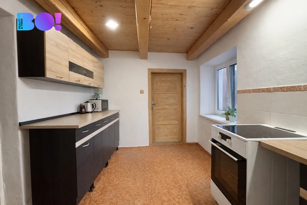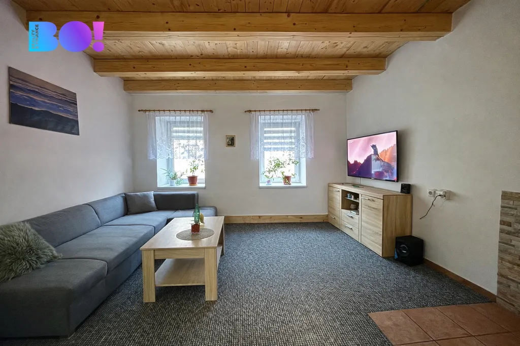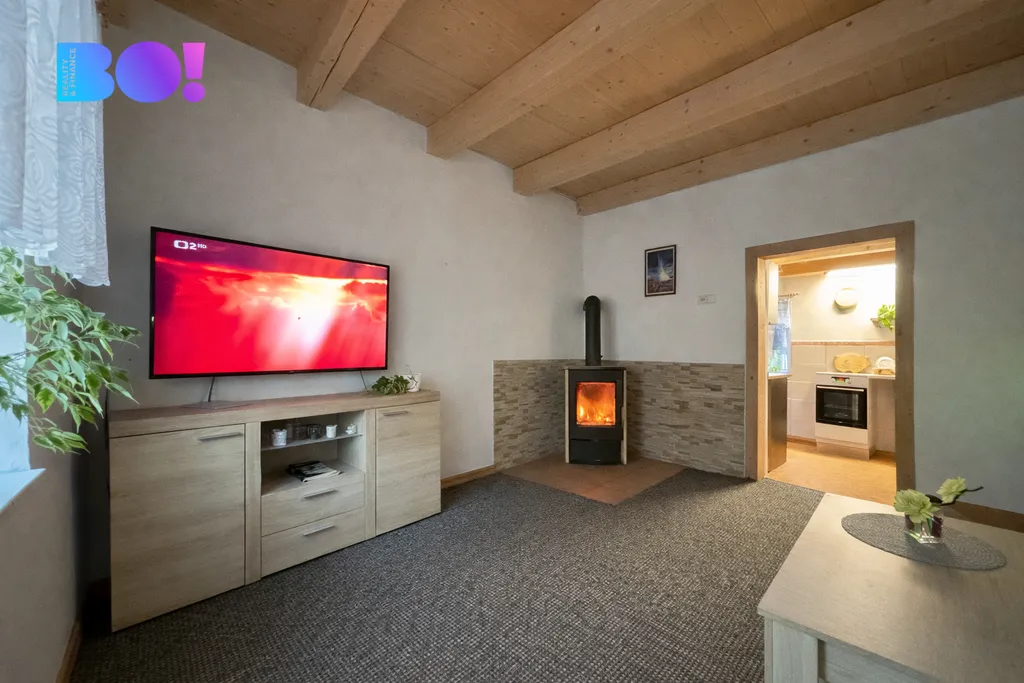 Dům je postaven ze smíšeného zdiva a aktuálně disponuje dispozicí 1+1 o podlahové ploše 36 m². Velkým benefitem je však další místnost o velikosti 23 m², která vznikla z původního průjezdu – díky tomu lze nemovitost velmi jednoduše přestavět na plnohodnotnou dispozici 2+1 o celkové ploše 59 m².