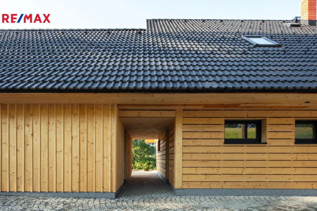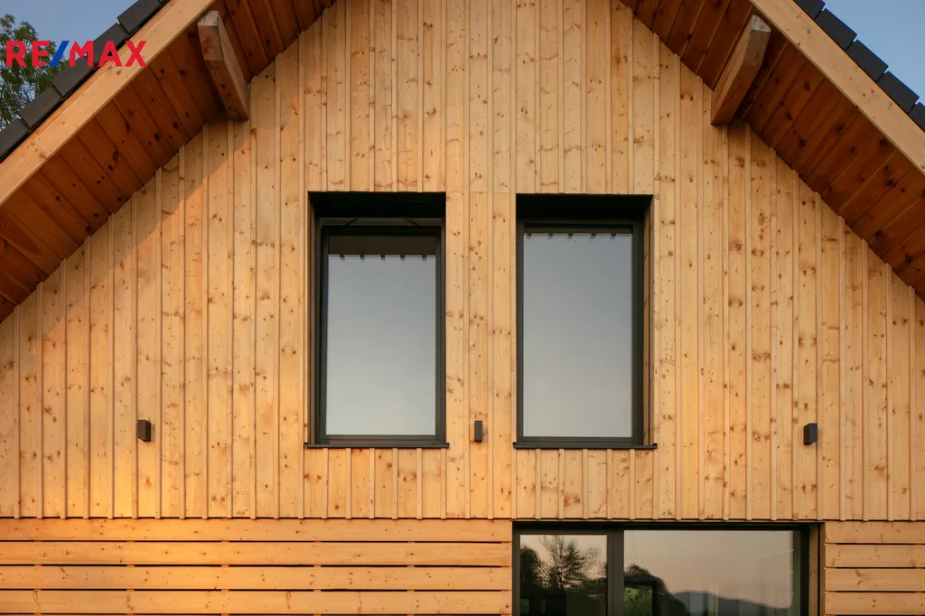 Dominantou domu je čistý architektonický styl s dřevěným obkladem, sedlovou střechou a prosvětlenými prostory orientovanými na jih.