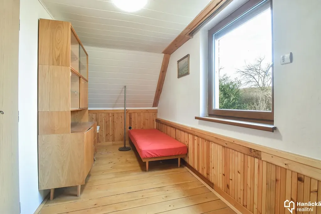 S výhradním zastoupením nabízíme ke koupi pěknou chatu v obci Penčice u Přerova. Jedná se o zděnou chatu se zastavěnou plochou cca 49 m2 postavenou cca v roce 1980. Nemovitost je situovaná v klidné chatové osadě v okrajové části obce. V prvním podlaží se nachází chodba, společenská místnost s krbem, kuchyň a koupelna s WC. Ve druhém podlaží jsou dva pokoje, nad nimiž je pak pod hřebenem střechy ještě další prostor pro příležitostné přespání nebo skladování věcí. V každém patře chaty je k dispozici balkon nabízející pěkný výhled do okolní krajiny. Na první podlaží chaty navíc navazují zastřešená pergola a také venkovní terasa umožňující relax a společné posezení. V suterénu objektu se nachází garáž a skladovací prostory. V posledních letech byly provedeny některé rekonstrukční a modernizační práce. Byla osazena nová plastová okna s izolačními trojskly a na ty byly také nainstalovány elektricky ovládané venkovní rolety. Byla také vybudována nová pergola, jejíž podlaha a spodní balkon byly opatřeny kamínkovým kobercem s epoxidovou pryskyřicí. K vytápění chaty slouží krb ve společenské místnosti a krbová kamna v kuchyni. Nemovitost je napojena na el. 400V, obecní vodovod, odpad je svedený do žumpy. Celková výměra pozemku je 691 m2. Pozemek je pro lepší využitelnost a jednodušší údržbu upravený do několika teras. Je zde několik ovocných stromů, okrasné keře, záhony, skalka a zbytek je zatravněný. Okolí chaty nabízí možnost realizovat různé výlety a procházky po okolí. Dobrá dostupnost autem a busem. Přímo k chatě je možné zajet automobilem. Volné ihned, prodej včetně vybavení a zařízení. Více informací a případně naplánování prohlídky u makléře zakázky.