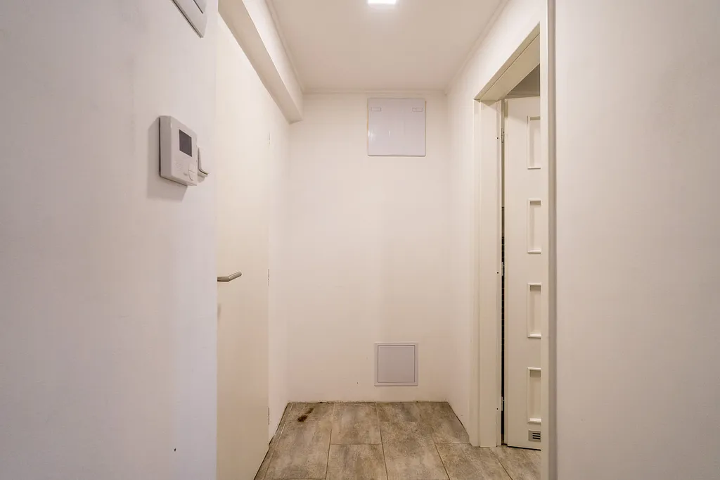 Dispozice bytu zahrnuje vstupní předsíň, samostatnou kuchyni, obývací pokoj, ložnici a koupelnu se sprchovým koutem a WC. Pokoje jsou průchozí. Byt prošel kompletní renovací – je vybaven novými špaletovými okny, dřevěnými parketami v obytných místnostech a dlažbou v kuchyni a koupelně. Vytápění zajišťuje kombinovaný plynový kotel. V koupelně je k dispozici prostor pro pračku a dvojité umyvadlo. Kuchyň je plně vybavena spotřebiči: myčka nádobí, lednice, indukční varná deska a trouba.