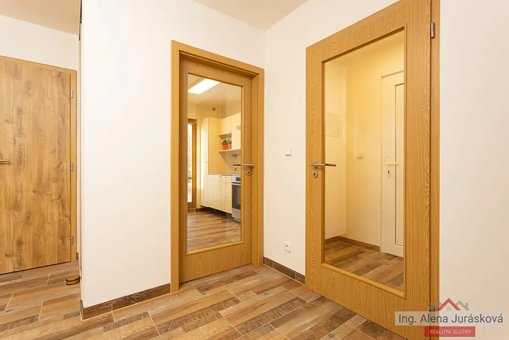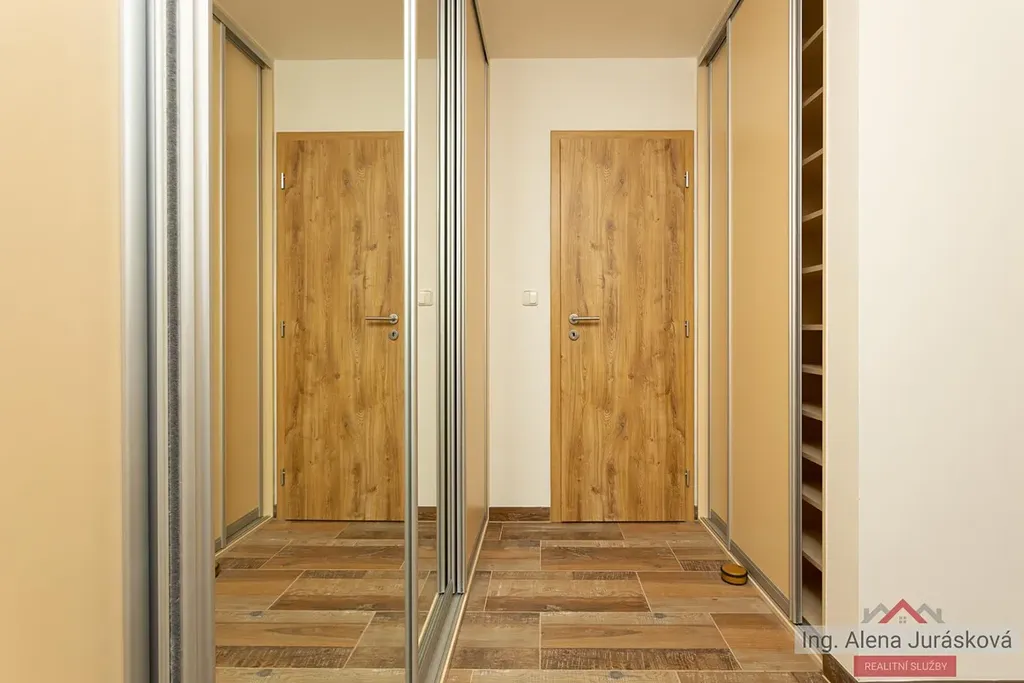 Vstup do bytu vás uvítá prostornou a světlou chodbou, která vás provede do všech místností. V obývacím pokoji orientovaným na severovýchod se nachází pohodlná sedací souprava, komoda a jídelní stůl, v jeho odděleném prostoru dvojlůžko. Z kuchyně orientované na jihozápad naproti obývacímu pokoji můžete vyjít rovnou na menší terasu, kde si můžete vychutnat snídani nebo odpolední kávu. Nová kuchyň je plně vybavena veškerými spotřebiči a má dostatek úložného prostoru pro vaše kuchyňské potřeby. V koupelně se nachází sprchový kout, umyvadlo a toaleta. V chodbě najdete velké úložné prostory - skříně pro vaše věci.