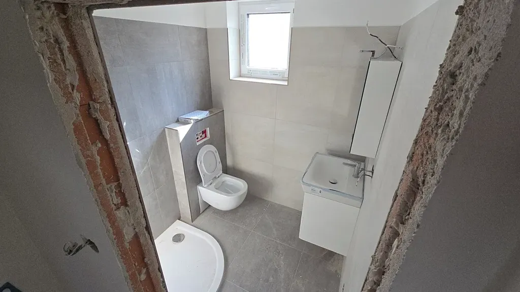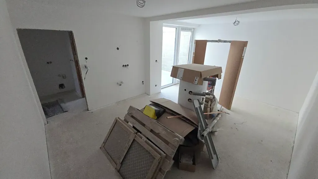 Dispozičně 1+KK, ideální pro jednotlivce nebo na investici. Obývací část s přípravou na kuchyň (dodáváme standardně bez kuchyňské linky) a vstupem na terasu. Předsíňka s prostorem pro pračku a úložné prostory a koupelna se sprchovým koutem.