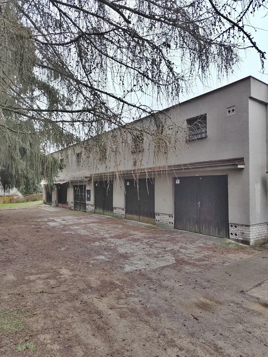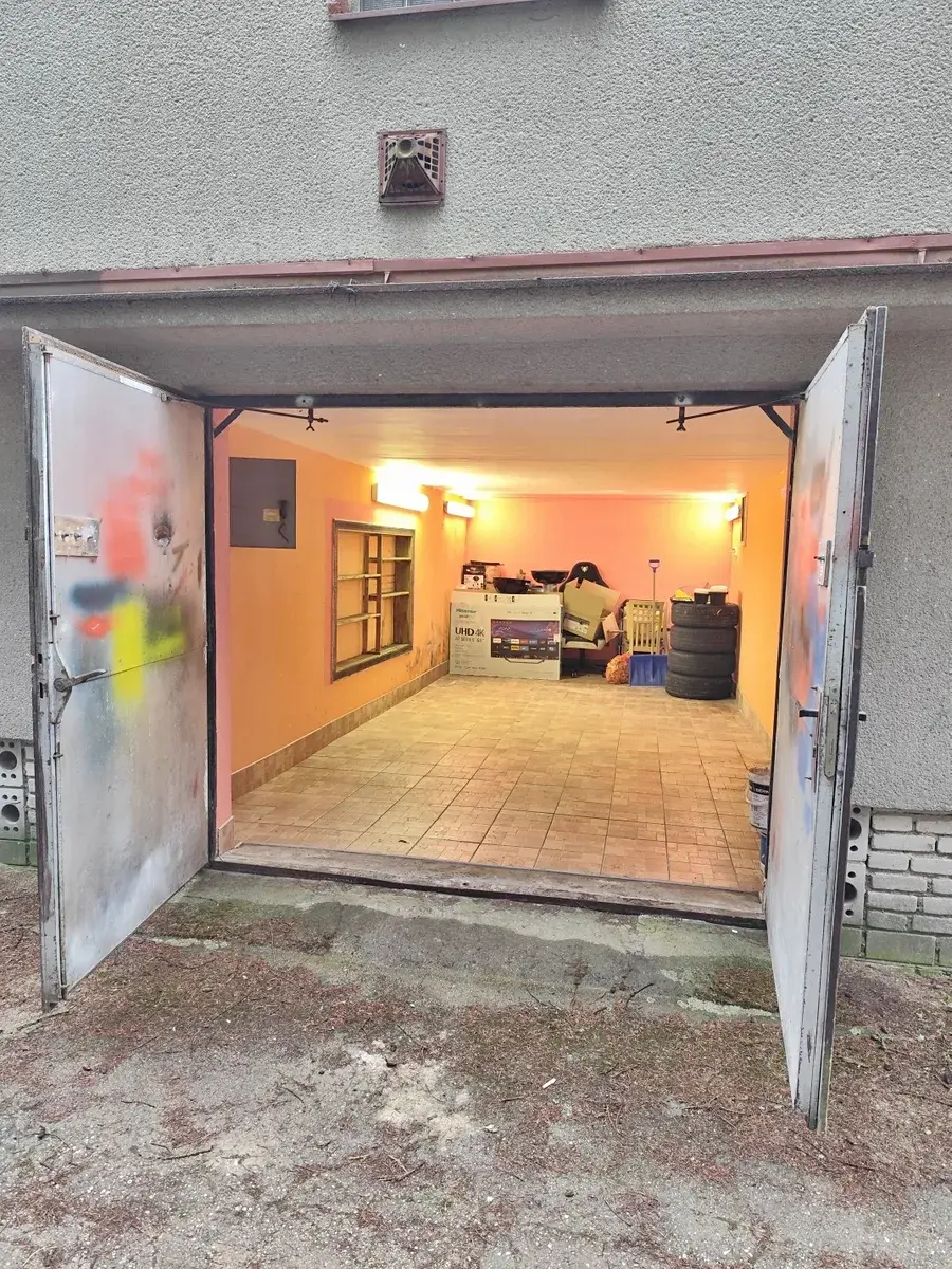 Garáž sousedí z obou stran s dalšími garážemi a nad danou garáží se nachází v patře další garáž. Vnitřní přepažení mezi parkovacími místy je zajištěn. Nová dlažba na podlaze, vrata jsou dřevěná dvoukřídlá. Elektrický proud zaveden s vlastním elektroměrem, možnost přitápění elektrickým přímotopem.