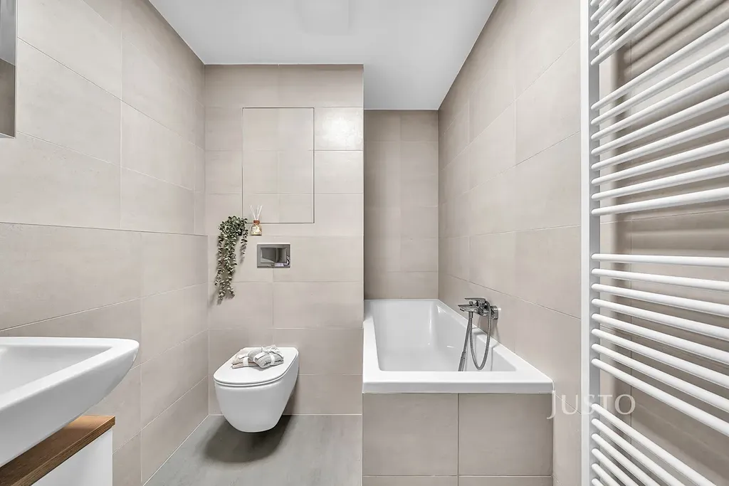 Byt je světlý, vzdušný, prostorný a ve skvělé lokalitě. Jeho velikost je 45,8 m² (48,7 m² včetně svislých konstrukcí) + terasa 3,1 m² + sklep 1,2 m². Velkou výhodou tohoto bydlení je rozhodně jeho velikost, náklady na bydlení, terasa, komora přímo v bytě, sklep, kryté parkovací stání a umístění domu. Na terase si můžete vychutnat ranní kávu nebo si odpočinout po náročném dni.