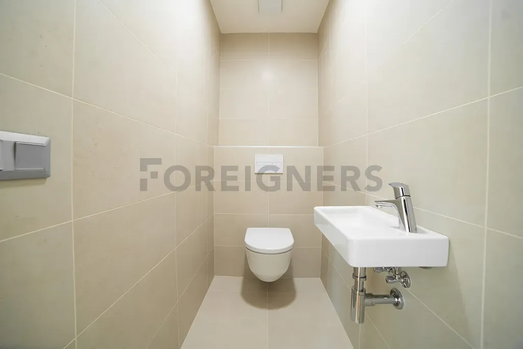 V bytě samotném naleznete koupelnu která disponuje vanou se sprchovou zástěnou. Krásný balkon 13m2 s výhledem. Technická místnost pro umístění pračky a sušičky, kde se také nachází rekuperace, která je rozvedena do celého bytu a zajišťuje čerstvý vzduch a optimální klima. Dřevěné dubové podlahy s podlahovým vytápěním dodávají bytu útulný a příjemný vzhled a tepelný komfort, tak jako hliníkové okna s trojskly a venkovní integrovanými žaluziemi, které Vám umožní regulovat množství světla v bytě podle vašich preferencí.