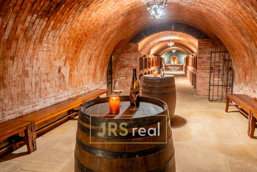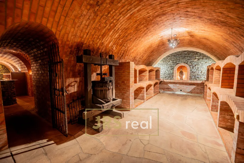 Skutečným klenotem celé nemovitosti je rozsáhlý, kvelbený vinný sklep o velikosti 160 m², který nabízí autentický zážitek v tradičním moravském stylu. Na hlavní sklep navazují další klenuté prostory o velikostech 14 m² a 17 m² a také praktický trojbox o výměře 46 m². Tyto prostory jsou ideální nejen pro skladování vína, ale i pro pořádání řízených degustací či soukromých akcí.