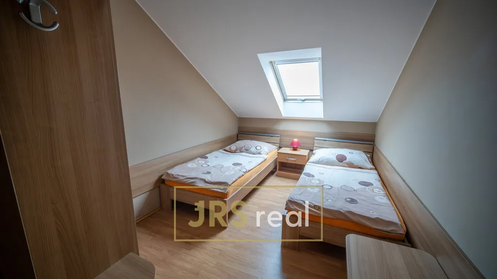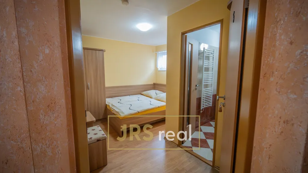 Po vstupu do nemovitosti Vás přivítá chodba, odkud vede schodiště do obytné části, kde se nachází 5 útulných, plně vybavených pokojů s celkovou kapacitou 11 lůžek. Každý pokoj disponuje vlastním sociálním zázemím – koupelnou se sprchovým koutem a toaletou, což zajišťuje maximální soukromí a pohodlí pro hosty.