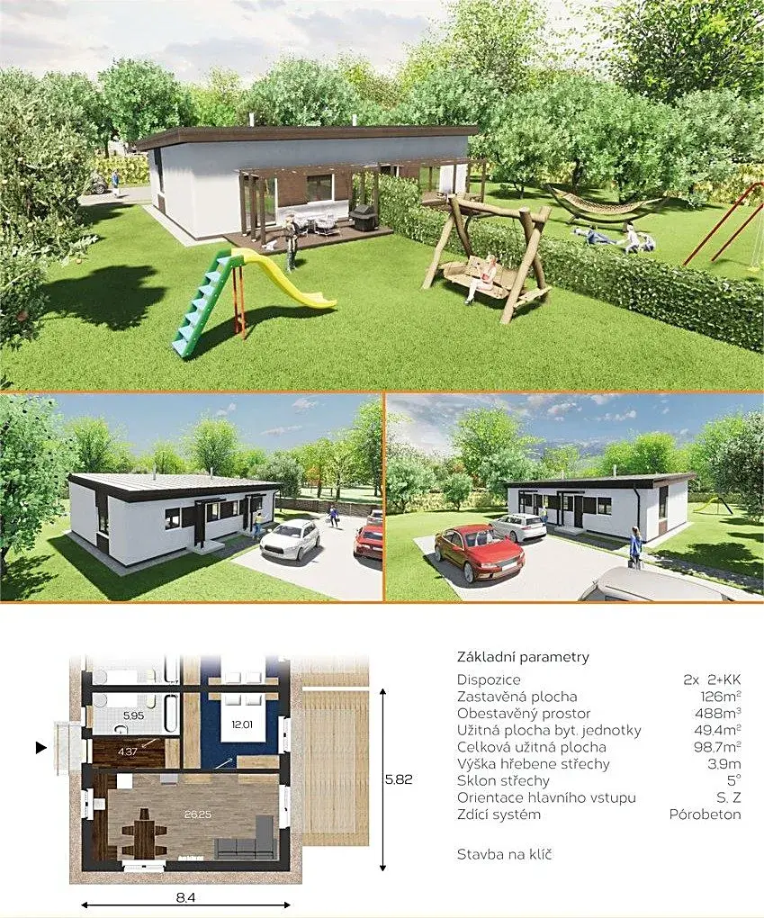 Dispozice 2+kk: Moderní a úsporný byt o užitné ploše 49,4 m².