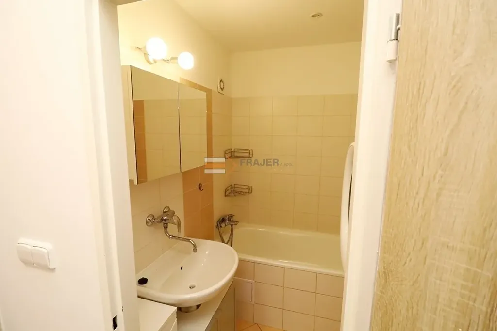 K bytu náleží komora na chodbě u bytu (1 m2) a sklepní kóje (3 m2).