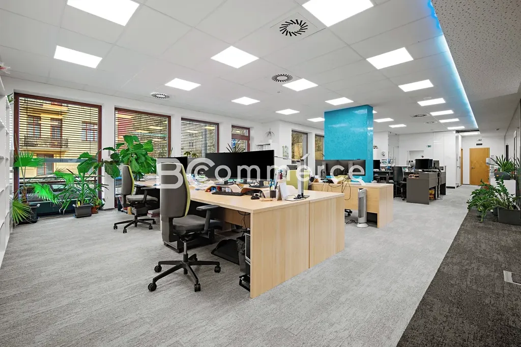 Ve výhradním zastoupení majitele nabízíme moderní bezbariérovou kancelářskou jednotku v přízemí bytového domu na Starém Brně na ulici Hlinky, nedaleko Mendelova náměstí. Jednotka má celkem 230m2 a je dělená na vstupní prostor (šatní část/zádveří), pak velkou open space kancelář, oddělenou velkou jednací místnost, menší jednací místnost a další dvě samostatné kanceláře. Samostatná vybavená kuchyňka má i jídelní část.